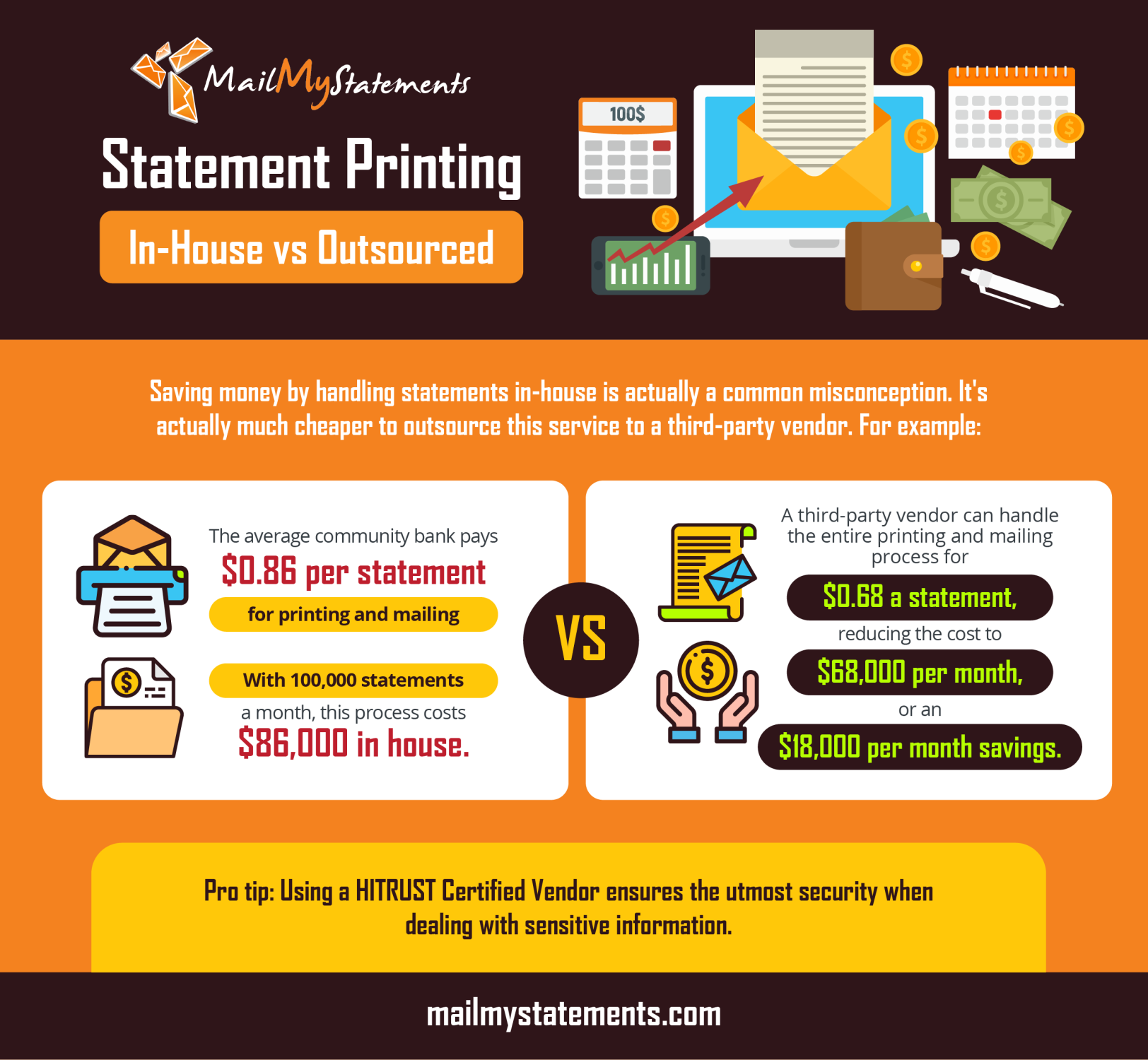 Statements are a regular form of communication between banks and their account-holders. Outsourcing bank statement printing and mailing services to third-party vendors is not only fiscally responsible, but it can help improve customer relations, increase collections, and free up resources.